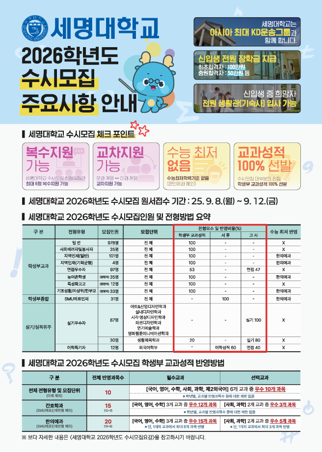 본문 시작 홈으로 학부활동 학부소개 학부활동 교육과정 커뮤니티 학부생활 입학안내 홈페이지가이드 학부갤러리 학부행사 학생회 활동 전공 동아리 학부갤러리 학부갤러리 페이스북 트위터 프린트 2026학년도 수시모집 주요사항 전체관리자 757 2025-09-03 2026학년도 수시모집 주요사항 안내 목록 이전컴퓨터학부 소개 다음 컴퓨터학부 윈도우즈프로그래밍 전공 실습 담당부서 : 컴퓨터학부 담당자 : - 연락처 : 043-649-1272 최종수정일 : 2024-10-26 만족도조사 만족도 조사 이 페이지에서 제공하는 정보에 대하여 만족하시나요? 매우만족 만족 보통 불만족 매우불만족