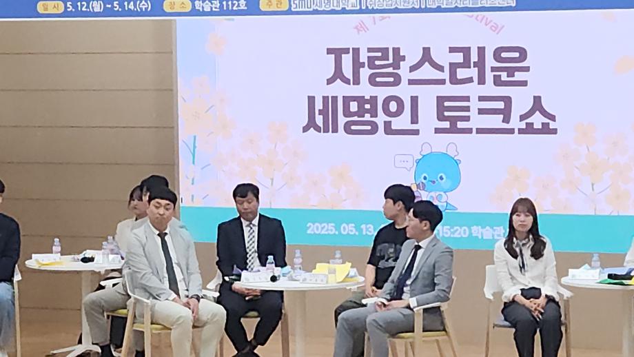 본문 시작 홈으로 커뮤니티 학과소개 교수소개 학과과정 커뮤니티 홈페이지가이드 포토갤러리 학과공지 채용정보 학과일정 포토갤러리 전공자료실 정보자료실 포토갤러리 페이스북 트위터 프린트 자랑스러운 세명인 토크쇼 전기공학과 2008 2025-05-15 2025년 5월 13일(화) 학술관 112호에서 열린 자랑스러운 세명인 토크쇼에 현재 한국철도공사(코레일)에서 전기기술팀장으로 근무하고 계신 황윤철(98학번_전기공학과) 졸업생을 모셨습니다. 목록 이전2025 농촌 봉사활동 담당부서 : 전기공학과 담당자 : - 연락처 : 043-649-1307 최종수정일 : 2024-10-26 만족도조사 만족도 조사 이 페이지에서 제공하는 정보에 대하여 만족하시나요? 매우만족 만족 보통 불만족 매우불만족